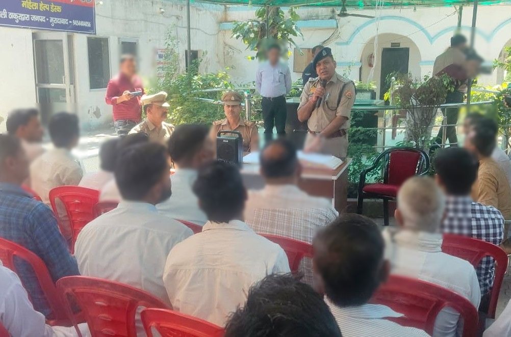 मुरादाबाद। आगामी डॉ. भीमराव अम्बेडकर जयंती के अवसर पर शांति एवं सौहार्दपूर्ण माहौल बनाए रखने के लिए पुलिस प्रशासन पूरी तरह सतर्क नजर आ रहा है। इसी क्रम में क्षेत्राधिकारी ठाकुरद्वारा आशीष प्रताप सिंह ने थाना ठाकुरद्वारा में थाना प्रभारी मनोज परमार के साथ कार्यक्रम आयोजक समिति के पदाधिकारियों के साथ बैठक की।