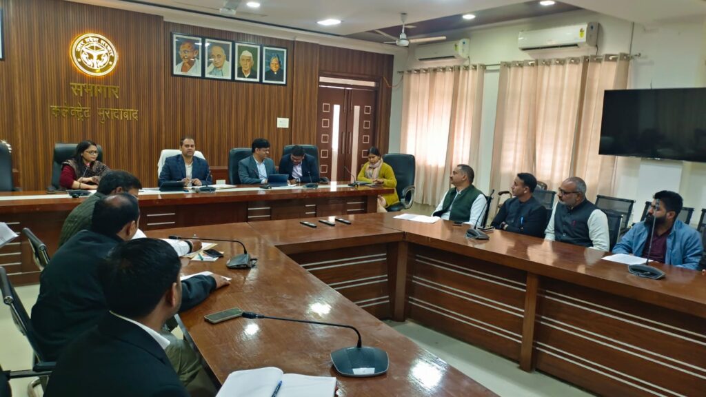 मुरादाबाद। भारत निर्वाचन आयोग के निर्देशानुसार संचालित विशेष प्रगाढ़ पुनरीक्षण कार्य के संबंध में जिला निर्वाचन अधिकारी अनुज सिंह ने कलेक्ट्रेट सभागार में विभिन्न राजनीतिक दलों के प्रतिनिधियों के साथ बैठक की। बैठक में जनपद में चल रहे पुनरीक्षण कार्य की विधानसभा-वार प्रगति एवं संबंधित बिंदुओं पर विस्तृत चर्चा की गई।