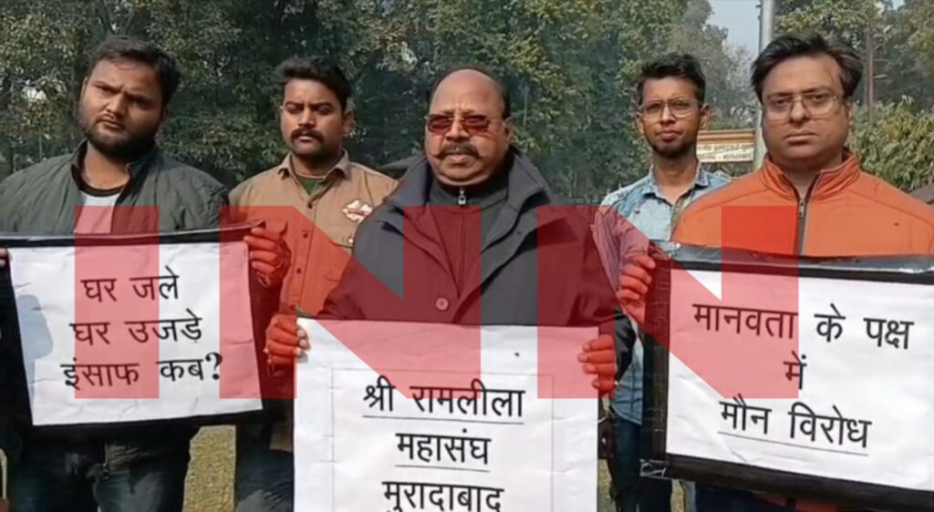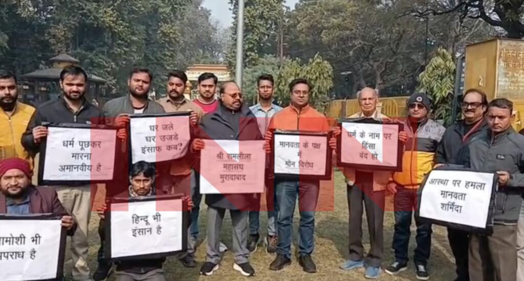 मुरादाबाद। बांग्लादेश में हिंदुओं पर हो रहे कथित अत्याचार के विरोध में मुरादाबाद में आक्रोश लगातार तेज होता जा रहा है। हिंदू संगठनों द्वारा इन घटनाओं के खिलाफ लगातार विरोध दर्ज कराया जा रहा है। शनिवार को अध्यक्ष राजेश रस्तोगी के नेतृत्व में श्री रामलीला महासंघ के बैनर तले बड़ी संख्या में कार्यकर्ताओं ने प्रदर्शन कर अपना रोष जताया।