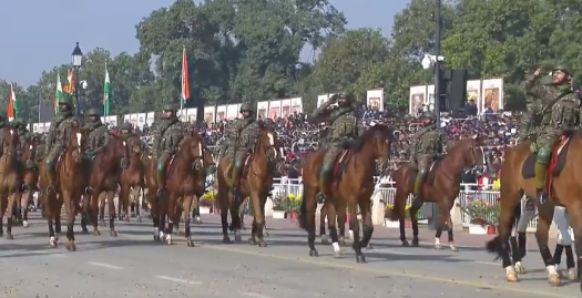 परेड में टोही दस्ते के रूप में बैटल एरे वर्दी में सजी-धजी 61 कैवलरी ने शिरकत की। इसके बाद भारत के पहले स्वदेशी रूप से डिजाइन किए गए बख्तरबंद लाइट स्पेशलिस्ट व्हीकल और हाई मोबिलिटी रिकोनिसेंस व्हीकल का प्रदर्शन किया गया। स्वदेशी ध्रुव हेलिकॉप्टर के जरिए ‘प्रहार फॉर्मेशन’ का शानदार प्रदर्शन हुआ, जिसका नेतृत्व कर्नल विजय प्रताप ने किया।