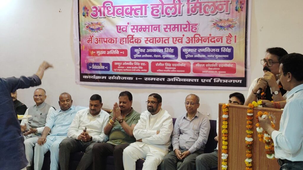 सिविल लाइंस क्षेत्र स्थित सम्राट अशोक नगर के एक होटल में वरिष्ठ अधिवक्ता ठाकुर ओमवीर सिंह एवं साथी अधिवक्ताओं द्वारा आयोजित इस कार्यक्रम में बड़ी संख्या में वरिष्ठ एवं युवा अधिवक्ता शामिल हुए। समारोह के दौरान पारंपरिक होली गीतों और हंसी-मजाक के साथ पूरे माहौल में उत्सव का रंग देखने को मिला। अधिवक्ताओं ने एक-दूसरे पर फूलों की वर्षा कर खुशियां साझा कीं और मिठाइयां बांटकर होली की बधाइयां दीं।